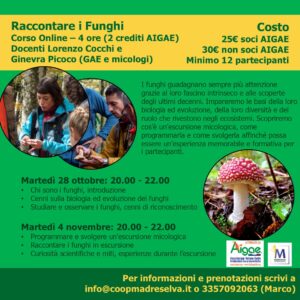 I funghi guadagnano sempre più attenzione grazie al loro fascino intrinseco e alle scoperte degli ultimi decenni. Impareremo le basi della loro biologia ed evoluzione, della loro diversità e del ruolo che rivestono negli ecosistemi. Scopriremo cos’è un’escursione micologica, come programmarla e come svolgerla affinché possa essere un’esperienza memorabile e formativa per i partecipanti.